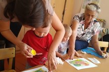 Дети в группе кратковременного пребывания «Карапуз» с удовольствием учатся рисовать пальчиковыми красками «Зёрнышки для петушка». Рисование пальчиками – это не только интересно и весело, но и полезно.