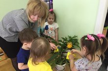 "Малышок" төркеме балалары белән табигать почмагында уртак эшчәнлек үткәрелде. Балалар бүлмә гөлләрен һәм үсемлекләрне ничек дөрес итеп карарга өйрәнделәр. Балалар рәхәтләнеп "Чәчәкләр үсүче болында" - дигән уен уйнадылар.