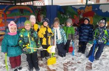 В подготовительной группе «Сказка» был проведен трудовой десант. Дети с удовольствием приняли игровую ситуацию, связанную с трудом. При этом главная цель десанта - воспитание у дошкольников позитивного отношения к труду, развитие желания научиться, стать самостоятельным. Зимний труд доставляет детям много радости, способствует укреплению здоровья, помогает расширить представление о свойствах снега и льда, воспитывает любовь к природе.