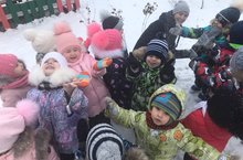 Балаларның табигать күренешләре турында белемнәрен баету максаты белән "Кроха" төркемендә тәрбияләнүчеләр саф һавада йөрү вакытында беренче кар белән таныштылар.