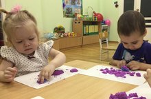 "Малышок" балалар төркеме кинетик ком белән таныштылар. Экспериментлаштыру эшчәнлегенә кушылдылар, комнан катлаулы булмаган әйберләр ясарга өйрәнделәр.