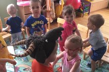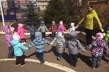 С целью реализации плана воспитательно-образовательной работы в группе "Кроха" на прогулке была организована подвижная игра "Пузырь". Малыши учились становиться в круг, постепенно сужать и расширять его, а так же действовать по сигналу педагога и согласовывать свои движения.