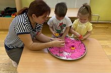 "Семицветик" төркеме балалары белән эшләгәндә тәрбиячеләр кинетик песок уеннарын актив кулланалар, алар баланың төрле яклап үсешен формалаштыра торган методларның берсе: эстетик үсеш, иҗади сәләтләрне үстерү, фикерләү, сөйләм.