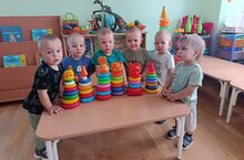 В первой младшей группе "Гномики" прошло увлекательное занятие "Весёлые пирамидки". Малыши познакомились с интересной сборно-разборной игрушкой пирамидкой, предоставленную в различных формах и размерах. Во время занятия детки учатся выполнять простые, но важные действия:снимать и нанизывать кольца, обращать внимания на величину колец, а также развивают координацию движений рук и мелкую моторику. У наших малышей получилось собрать красивые разноцветные пирамидки.