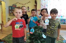 К ребятам группы «Затейники» Снеговик принес из леса Елочку. Он попросил ребят нарядить елку. Дети с удовольствием откликнулись на просьбу Снеговика. Игрушки получились все разные и очень яркие.