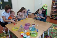 В группе кратковременного пребывания "Карапузы" малыши имеют возможность, находясь рядом с мамой, играть, двигаться, получать первые уроки общения со взрослыми и сверстниками. Легко и интерсно начинают свою адаптацию малыши группы "Карапузы" к детскому саду
