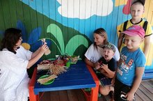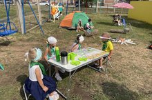 Балалар бакчасы тәрбияләнүчеләре җәй көне төрле материаллардан конструкцияләргә ярата,