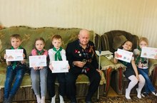 В предверии Великого праздника - День Победы, воспитанники старших групп - наши маленькие, но очень преданные патриоты, под руководством педагогов, организовали поздравление ветерана ВОВ Прохорова Григория Сергеевича