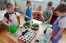 "Золотая рыбка" төркеме балалары үсентеләрне аерым күчереп утыртырга өйрәнделәр.Хәзер яшь тикшерүчеләр үсентеләрнең үсешен күзәтәләр һәм аларны карыйлар.
