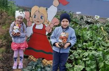 Менә тылсымлы көз җитте,халыкны мул уңышлары белән шатландырды. "Облачко" төркеме балалары олылар белән берлектә бакчада эшләделәр һәм яшелчәләрне тозладылар. Менә шундый "Банкада бакча" килеп чыкты.