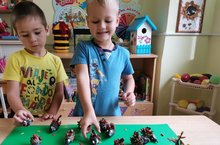 Вот и наступила осенняя поа, время сбора урожая и подготовки к зиме. Не только люди готовятся, но и лесные жители делают заготовки на зиму. Воспитаннки группы "Радуга" рассматривали иллюстрации, беседовали о том, как звери ведут подготовку к зимовке. Ребята изготовили из природного материала ежей, лесных обитателей, которые очень активно заготавливают запасы на зиму