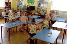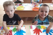 "Гномики" төркемендә рәсем ясау буенча дәрес узды. Балалар штамп ярдәмендә рәсем ясарга өйрәнделәр. Балалар рәсем ясаганда кагазь битләренә ориентлашырга, белемнәрен төс һәм формалар белән аерырга өйрәнәләр.