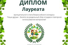 В целях развития экологического образования, экологической культуры и просвещения в дошкольных образовательных организациях и школах Чистопольского муниципального района, с 20 апреля по 16 мая 2022 года проведён муниципальный этап Всероссийского конкурса «Наши друзья – Эколята за раздельный сбор отходов и повторное использование материалов». Наш деткий стал Лауреатом!