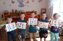 Сегодня в нашем детском саду в дежурной группе прошло занятие по аппликации на тему "Весенние тюльпаны" с целью воспитать бережное отношение к цветам, художественный вкус, настойчивость и желание сделать работу красиво и аккуратно.