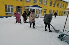 Наши педагоги приняли активное участие в среднике по очистке территории от снега.