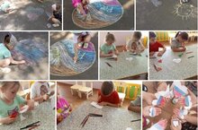 В преддверии праздника в группе "Затейники" была проведена беседа на тему «Наша Родина – Россия», в ходе которой дети обсудили понятия «Родина», «флаг», «герб», «гимн». Дошкольники рисовали мелками на асфальте и сделала виде сердца «Флаг России». Детям было очень интересно знакомиться с историей и традициями родной страны. -