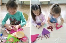 У воспитанников группы «Солнышко» расширили знания о народном декоративно - прикладном искусстве. Закрепили умение детей создавать декоративную композицию на треугольнике, используя цветы, листья, дуги, ягодки, и т.д; Упражняли в рисовании кистью разными способами. Учили использовать удачно сочетающиеся цвета, составлять на палитре оттенки цвета; Развивали эстетические чувства, воображение; воспитывали инициативу, самостоятельность, активность.