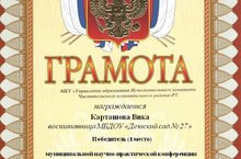 Поздравляем Карташову В. с победой в муниципальной научной практической конференции среди старших дошкольников " Знатоки родного края"