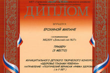 Воспитанница подготовительной группы "Медвежата" стала призером в муниципальном конкурсе "Здоровье глазами ребенка"