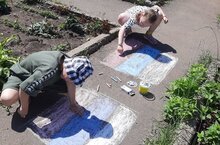 Воспитанники старшей и подготовительной групп приняли участие в фестивале рисунков на асфальте на тему «Флаги России»