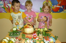 Выставки поделок из овощей и фруктов уже открылись в группах «Смешарики» и «Святлячки».