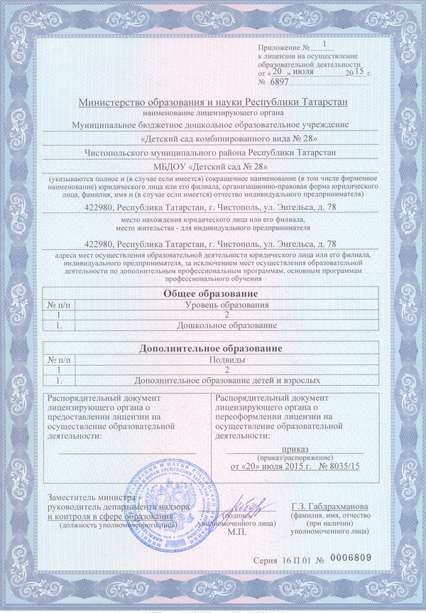 Приложение к лицензии на осуществление образовательной деятельности и дополнительного образования