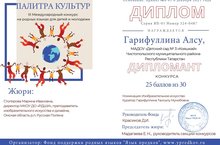 Поздравляем Гарифуллину Алсу, дипломата III Международного конкурса на родных языках для детей и молодежи "Палитра культур". Педагог: Гарифуллина Т.М.