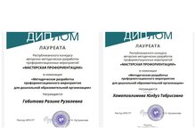Наши педагоги Габитова Р.Р.,Хаматгалимова Ю.Т., стали лауреатами в Республиканском конкурсе авторских методических разработок профориентационных мероприятий "Мастерская профориентация"