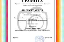 Поздравляем воспитанницу Хаматгалимову Гульназ, с призовым 2 местом в муниципальном конкурсе "Фото в объективе". Педогог: Хаматгалимова Ю.Т.