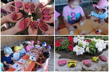 Дети старшей группы изготовили свои поделки насекомых из камушков. Вот такие яркие и красивые букашки - таракашки получились у нас. Они жужжали, летали, пыхтели и ползали по участку. Было очень весело. Педагог: Габитова Р.Р.