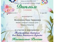 Поздравляем Валиуллину Аишу с заслуженной наградой в Международной викторине для детей дошкольного возраста.