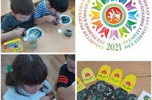 Балаларның татар орнаментының милли элементлары турындагы белемнәрен ныгытабыз, ул баш киемнәре бизәү өчен кулланыла. "Кыңгырау" төркемендә татар халкының баш киемнәре рәсеме буенча белем бирү эшчәнлеге узды.