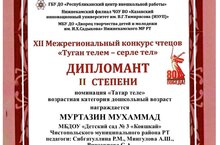 Наш воспитанник Муртазин Мухаммад участвовал XII Межрегиональном конкурсе чтецов "Туган телем- серле тел" и занял II место в номинации "Татар теле".Поздравляем и желаем дальнейших успехов