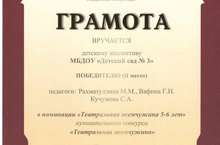 С целью приобщение детей к театральной культуре, развитие детского театрального творчества; формирование у дошкольников навыков выразительного чтения, артистических умений; выявление лучших чтецов среди детей, предоставление им возможности для самовыражения таланта, в соответствии с годовым планом работы МКУ “Управления образования Исполнительного комитета Чистопольского муниципального района РТ” на 2015-2016 учебный год и Положением проведен муниципальный конкурс “Театральная жемчужина” среди детских коллективов ДОО.