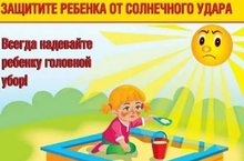 Лето, солнце, тепло - не только спутники счастливого детства, но и источник угрозы. Нужно помнить про такие явления как тепловой и солнечный удар. Уважаемые родители, убедительно просим не забывать головные уборы для своих детей. В такую жаркую погоду они просто необходимы!