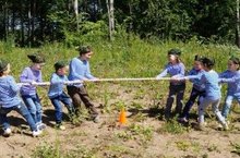 Дойдя до заветной поляны, дошколята соревновались в перетягивание каната, в спортивных эстафетах, метали в цель, вязали пиратские узлы, искали клад. Проходя этапы, новоиспеченные пираты учились ориентироваться на местности, читать информацию по настоящей пиратской карте.