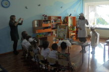 Начался новый учебный год, в котором не мало важную роль, отводится занятиям по безопасному поведения на дорогах города. С этой целью, гостью нашего дошкольного учреждения стал инспектор по пропаганде безопасносности на дорогах В.В.Воляков. На встрече с инпектором дети закрепили названия дорожных знаков, их назначение для пешеходов и водителей, поиграли в игры, отвечали на вопросы викторины и посмотрели мультфильм про непослушного пешехода. Владислав Владимирович проинструктировал детей о безопасном поведении пассажиров и пешеходов, а также подарил подарки. Встреча была дружеской и очень познавательной!