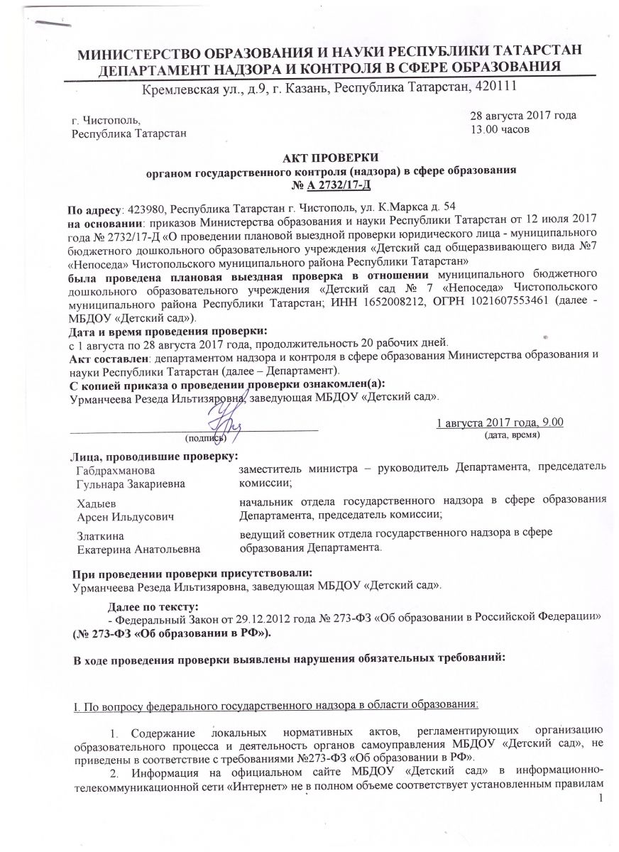 Муниципальное бюджетное дошкольное образовательное учреждение "Детский сад общеразвивающего вида №7 " "Непоседа" Чистопольского муниципального района Республики Татарстан