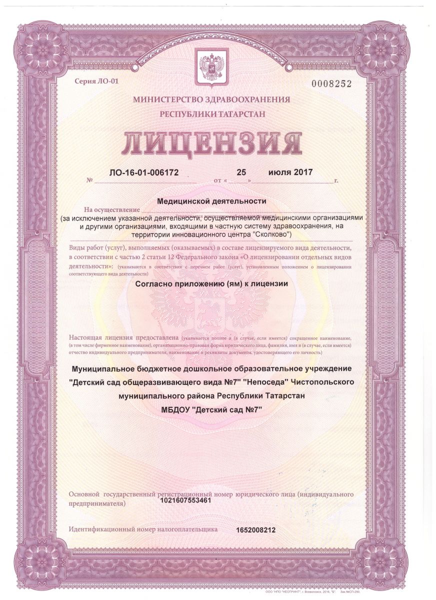 Муниципальное бюджетное дошкольное образовательное учреждение "Детский сад общеразвивающего вида №7 " "Непоседа" Чистопольского муниципального района Республики Татарстан
