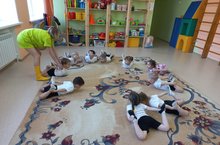 Занятия в кружке "Пластика" еженедельно проходят во второй младшей группе №7. Вот и сегодня малыши занимаются партерной гимнастикой с инструктором по физической культуре О.В.Емельяновой. Особенностью этой гимнастики является то, что упражнения выполняются в различных позах на полу: сидя, лежа на животе и на спине, и все они направлены на развитие гибкости