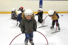 В рамках сотрудничества с МБУ "Спортивная школа "Ледовый дворец спорта" группа детей нашего детского сада возрастом 3-5 лет два раза в неделю организованно выезжает на тренировкки в Ледовый дворец. Они занимаются в группах хоккея и фигурного катания. На этой неделе состоялся первый выход малышей на лед.