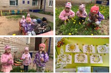 Воспитанники младшей группы сегодня совершили необычное путешествие - на Солнечную полянку. А солнечной эта полянка кажется от огромного числа ярких золотистых одуванчиков. Сегодня воспитателем группы №9 Н.В.Галеевой продолжена работа, начатая под ее руководством еще в период самоизоляции: детям и их родителям было дано задание понаблюдать за одуванчиками - как они растут, изменяют внешний вид, рассмотреть их строение, листья. А вот теперь малыши увидели как желтый наряд одуванчика меняется на белый и как образуются семена.