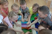 Сегодня прошло очередное заседание кружка "Айкьюша" в группе "Гномики". Темой исследования ребят была ткань. Дети рассмотрели виды ткани, отметили их различие (цвет, структуру). В ходе проведенных опытов дети пробовали смять ткань, разрезать кусочки ткани, под лупой и микроскопом рассмотреть ее структуру ткани и т.д.