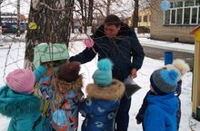 Вместе с руководителем ГПКЗ "Чистые луга" Улыбиным Максимом Сергеевичем воспитанники подготовительной к школе группы установили на территории детского сада кормушку для зимующих птиц и подготовили для них корм