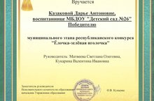 По итогам муниципального конкурса национальных костюмов народов Поволжья для кукол среди дошкольных образовательных учреждений воспитатели Винокурова В.В. и Севрикеева Ю.А. были отмечены грамотой Гран - при в номинации "Традиционный национальный костюм", воспитатель Коврижных - Бачиашвили Т.В. стала победителем в номинации "Этнические мотивы в национальном костюме".