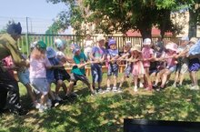 Традиционно в нашем детском саду прошло музыкально - спортивное развлечение "Веселый Сабантуй", в котором приняли участие все взрослые и дети. На протяжении всего праздничного мероприятия звучала татарская плясовая музыка. А веселый Шурале провел с детьми весёлые игры-соревнования: "Скачки на лошадях", "Перенеси яйцо в ложке", "Бег в мешках", "Бой с подушками", перетягивание каната и другие игры. Воспитанники продемонстрировать свою силу, ловкость, смекалку.