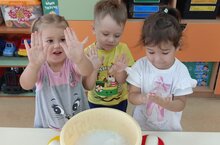 Сегодня для малышей группы "Гномики" была организована опытно - экспериментальная деятельность. Ребята познакомились со свойствами мыла, закрепили знания о том, для чего люди используют мыло, вспомнили культурно-гигиенические навыки, обогатили словарный запас.