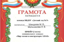 Команда "Джентельмен Строй", стала призёром муниципального конкурса "Мир сказки в конструкторах Лего". Поздравляем воспитанников и педагогов с результативным участием!