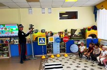 Тематическое мероприятие "Малышкина школа дорожной безопасности" совместно инспектором ДПС Медведевым Н.Е. в группе "Семицветик"