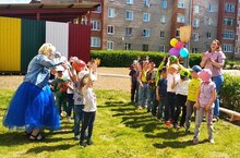 В детском саду, на свежем воздухе организовано развлечение в День защиты детей. Ребята играли в веселые игры, пускали мыльные пузыри, пели песни.